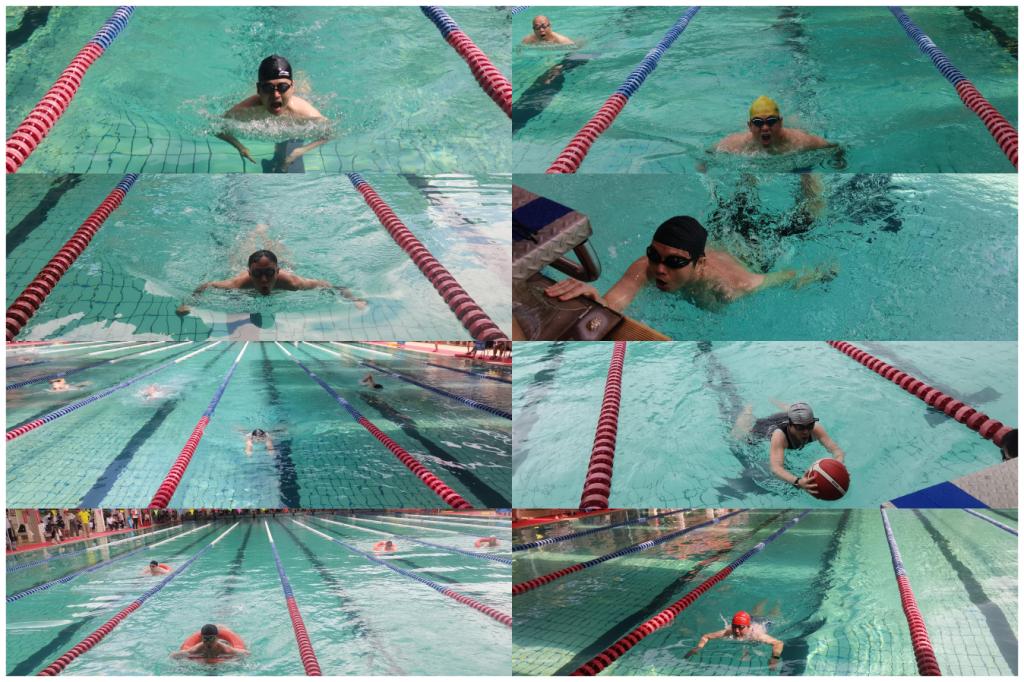 6月2日,我校第十七届游泳运动会在湖光校区游泳场举行。机关工会12名队员分别参加男子甲组50米蛙泳、男子甲组50米自由泳、男子乙组50米蛙泳、男子乙组50米自由泳、男子甲组100米蛙泳、男子甲组100米自由泳、男子甲组200米蛙泳、女子乙组100米蛙泳和女子乙组100米自由泳等9个个人项目比赛,以及男子4×50米自由泳接力、男女混合6×50米自由泳接力、圈圈相连4×50米接力、抱球4×50米接力等4个团体项目比赛。